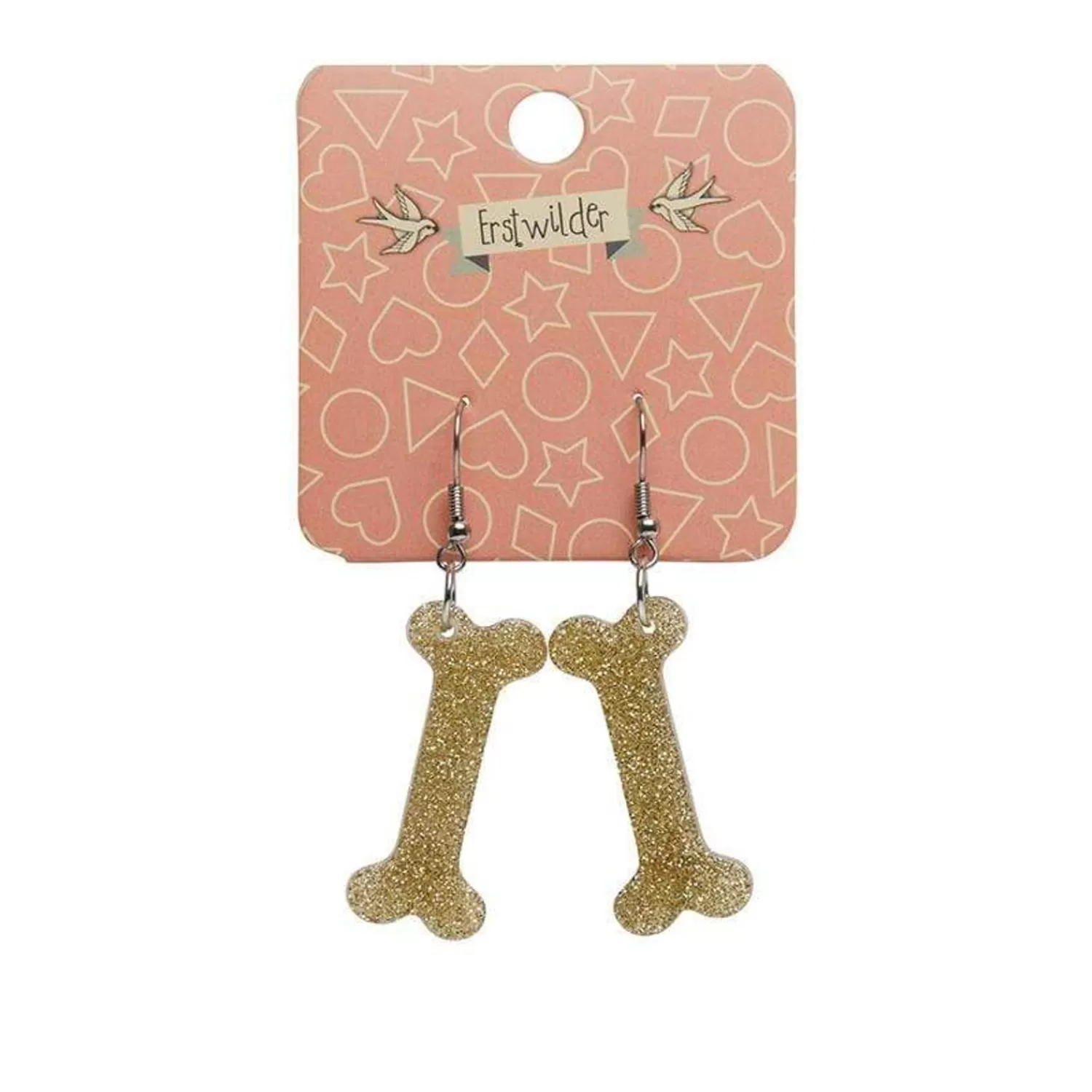Perfect For Your Next Big Shin-Dig, These Bone-Shaped Erstwilder Essentials Drop Earrings, Crafted From Glitter Gold Res…