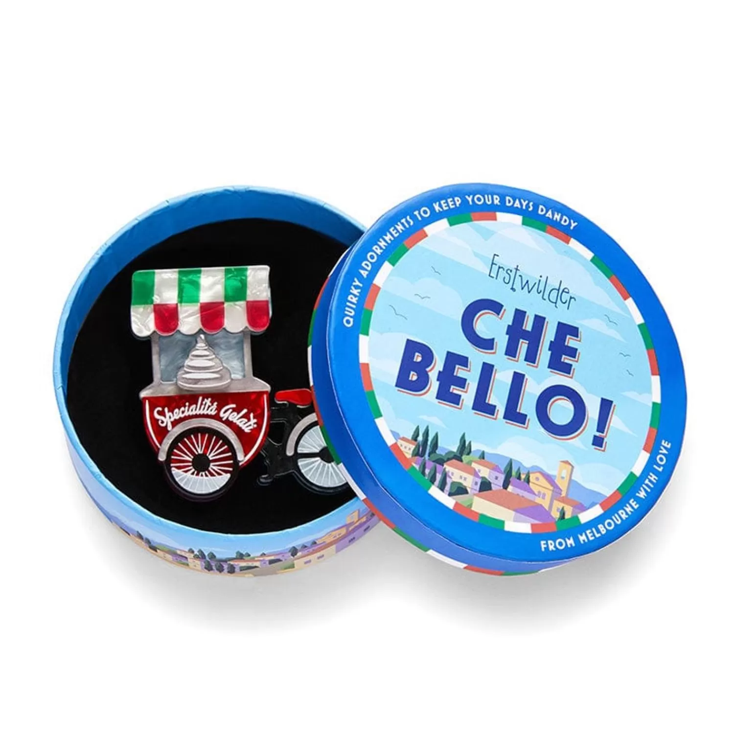 Celebrating The History, Culture, Fauna, And Culinary Delights Of Italy, The Carello Dei Gelati Brooch Has Been Created As Part Of The Che Bello! (How Beautiful!) Collection. Hand-Assembled From A Stunning Selection Of Textured Resins And Complete With Hand-Painted Detailing, This Design Will Remind You To Stop For Gelato, At Every Opportunity!