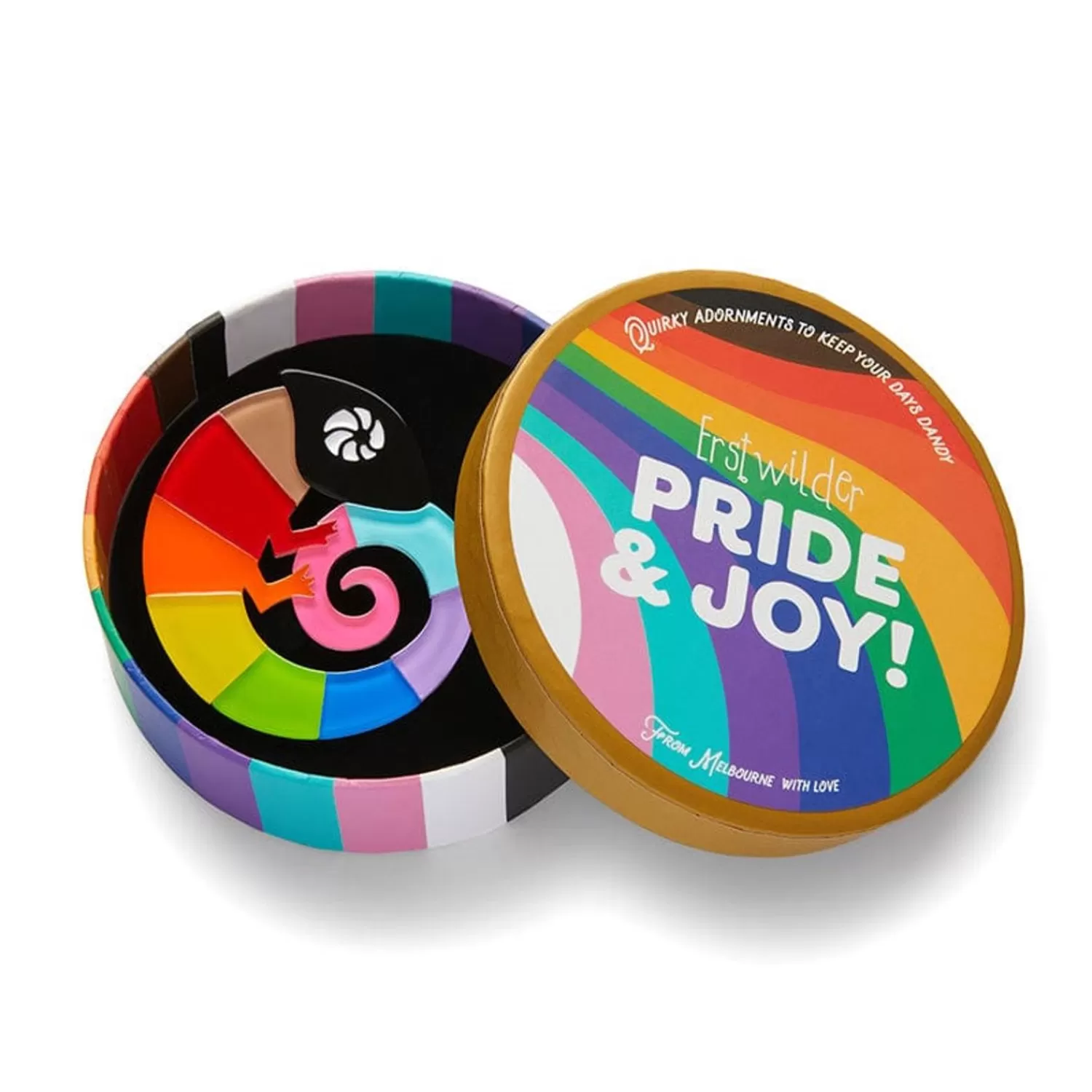 This Chameleon Says Why Blend In When You’Re Perfect Just The Way You Are! Hand-Assembled From Vibrant Bubble Resins, And With Hand-Painted Detailing, The Carmel’S Colourful Chameleon Brooch Design Has Had A Makeover Inspired By All The Colours Of The Progress Pride Rainbow, For A Fun And Playful Look You Can Be Proud Of. Love This Design? You’Ll Also Find It Available As An Enamel Pin, While Stocks Last.