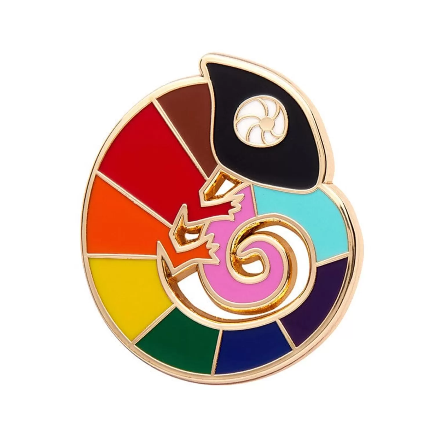 This Chameleon Says Why Blend In When You’Re Perfect Just The Way You Are! Featuring Colourful Hard Enamel With Inspiration Drawn From The Progress Pride Flag And A Gold Finish, Pin One Of These Onto Your Bag, Lapel, Jacket, Pocket Or Anywhere Really, And Show Your Support For The Lgbtqia+ Community.