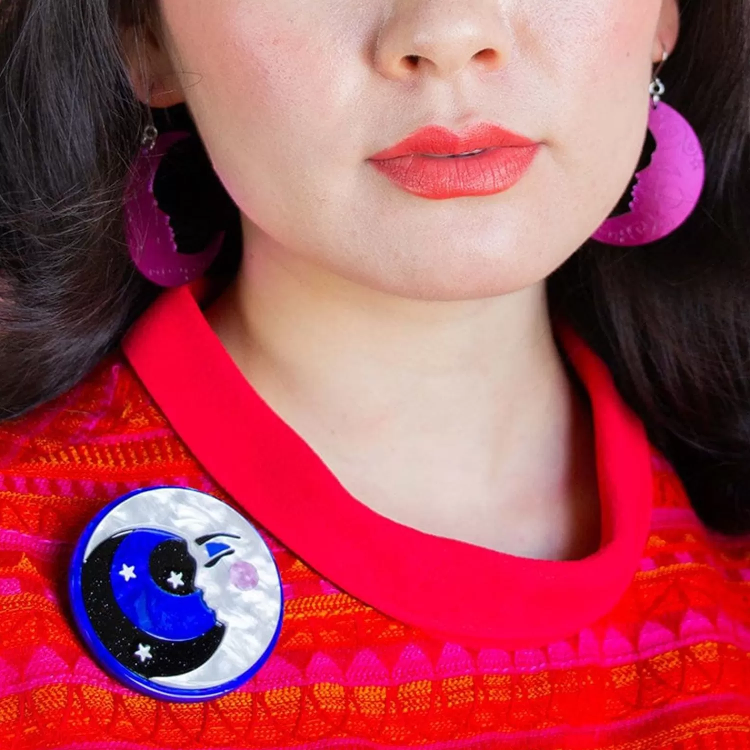 Fall In Love With This Luminescent Dead Of Night Brooch Design. This Wearable Art Accessory Has Been Hand-Assembled From A Selection Of Stand-Out Resins. Part Of Our Spellbound Release, This Crescent Moon Brooch Features A Combination Of Hand-Painted And Laser-Etched Details Making It An Ethereal Halloween Wardrobe Embellishment.