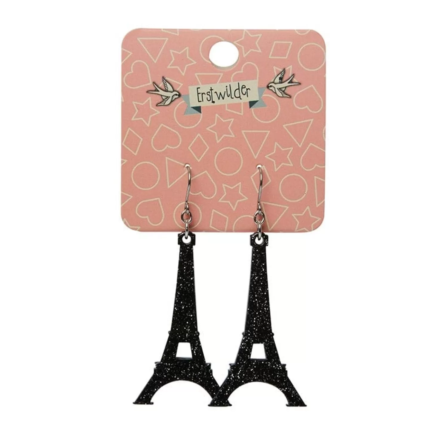 47Mm X 27Mm (H X W)Eiffel Tower Glitter Resin Drop Earrings – Black*Erstwilder Best
