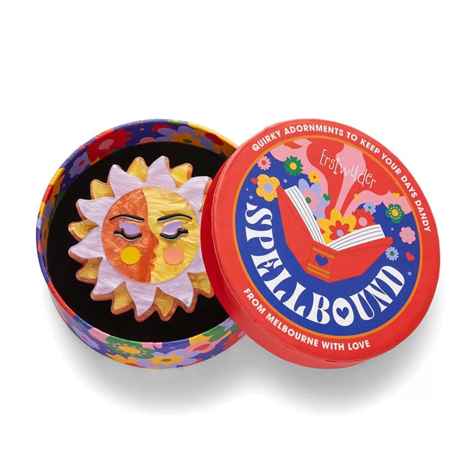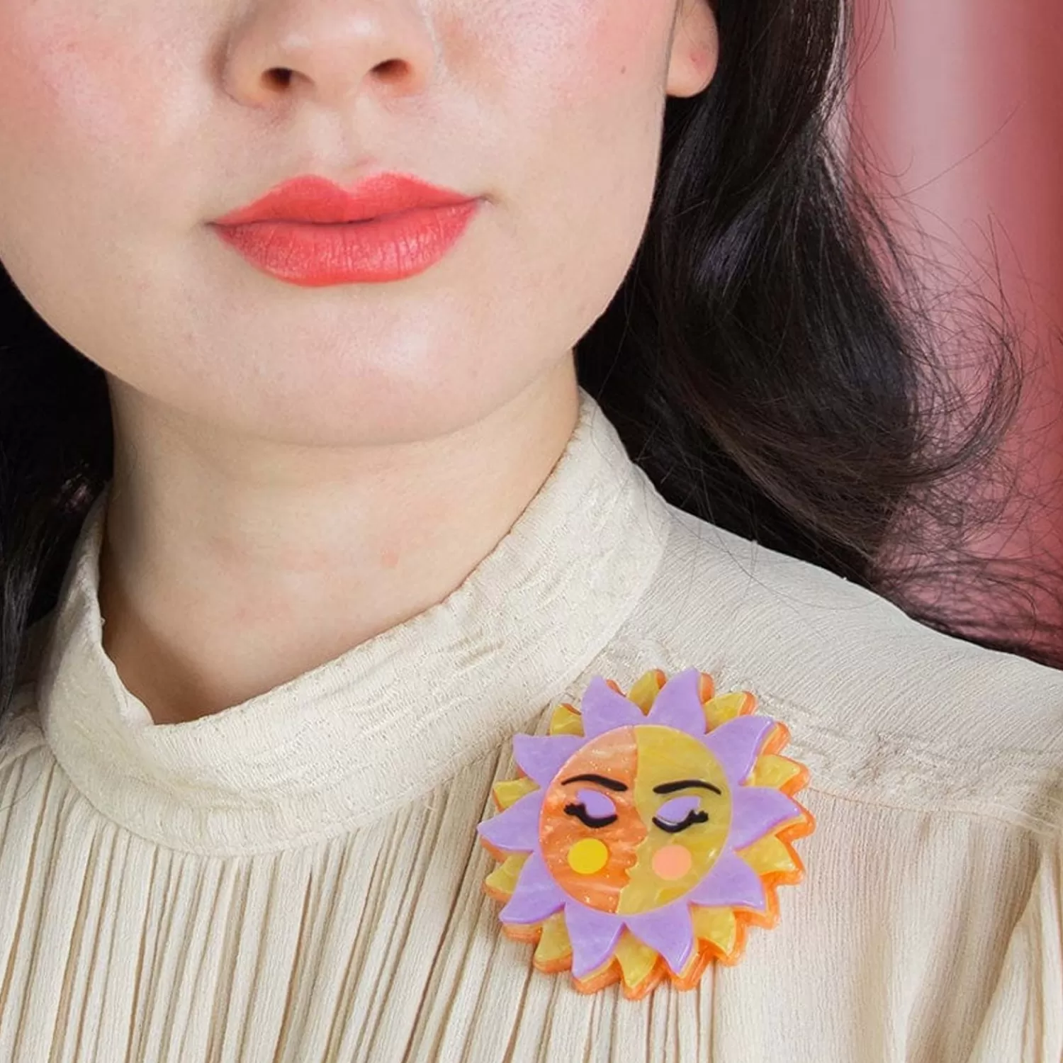 Fall In Love With This Radiating Eternal Sunshine Brooch. This Wearable Art Accessory Has Been Hand-Assembled From A Selection Of Stand-Out Resins. Part Of Our Spellbound Release, This Sun Design Features A Combination Of Hand-Painted And Laser-Etched Details Making It A Shining Wardrobe Supplement.