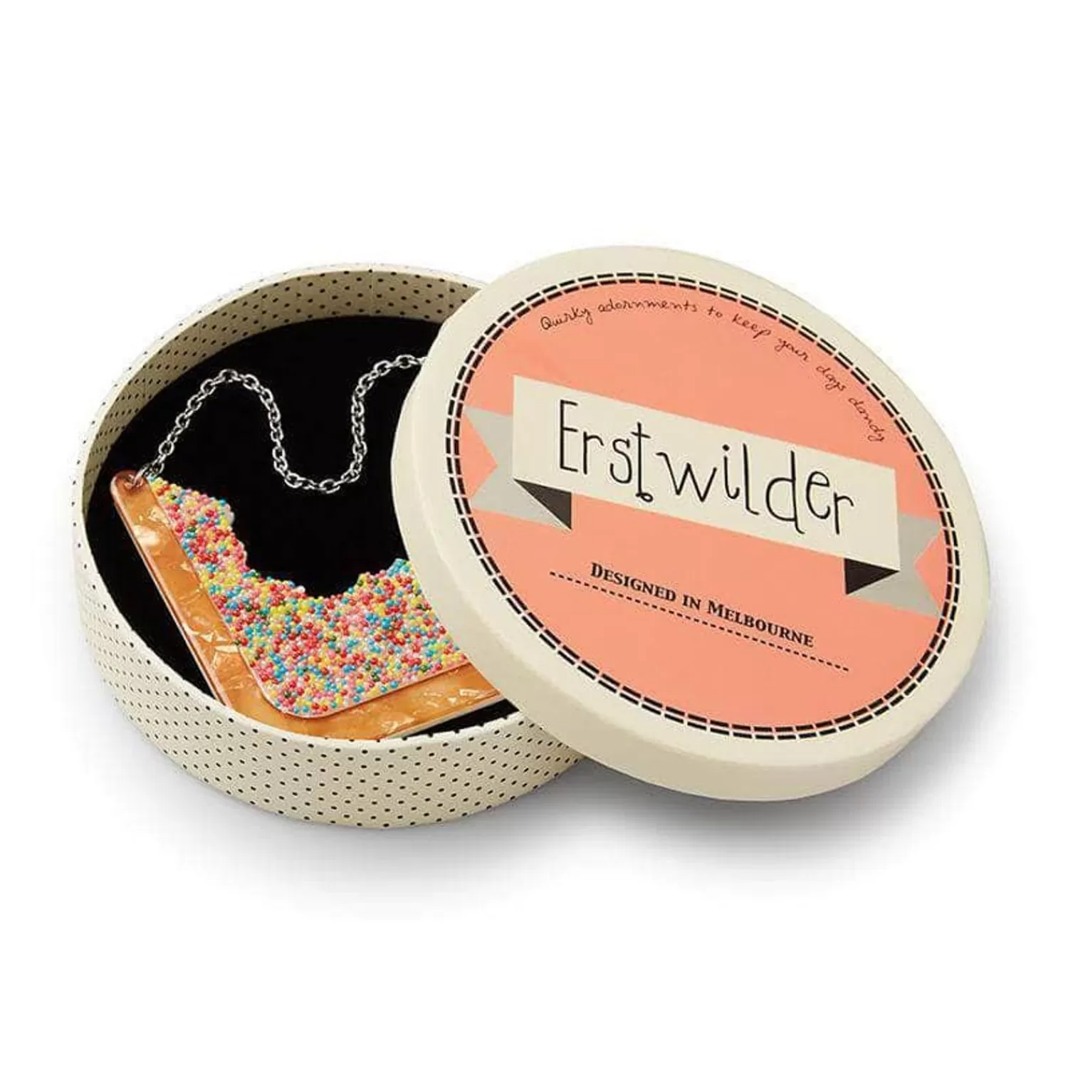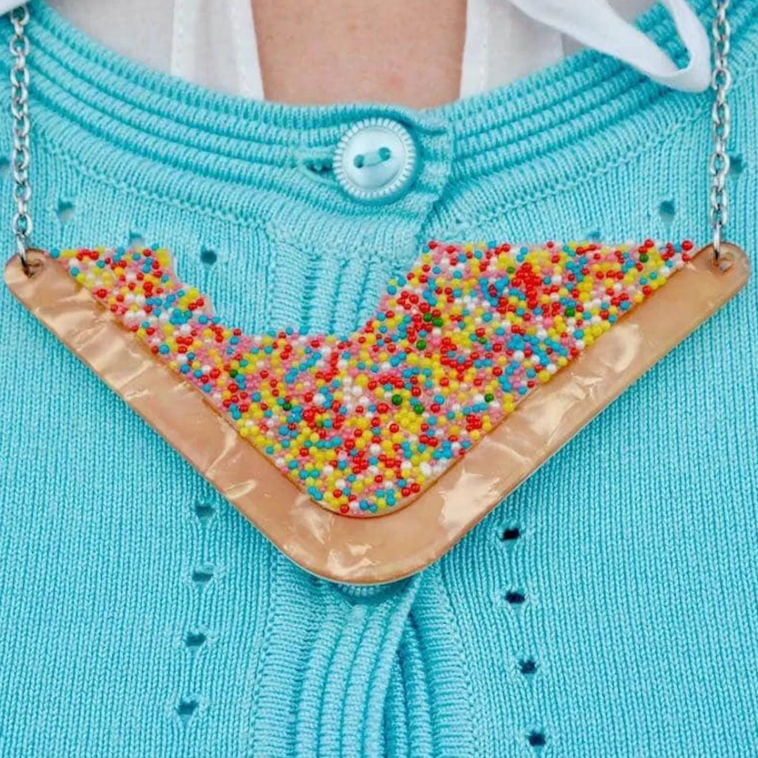 Australian Fine Dining At Its Best! This Is Our Ode To A True Culinary Classic, In Necklace Form. With Colourful Resin Beads And Hand-Assembled Details, It Might Be Hard To Believe But Unlike The Real Thing This Is Not For Eating! Our Fairy Bread Recipe Is A Family Secret But Here’S A Hint: Bread, Butter And Lots Of Sprinkles!Original Designer Sally Land