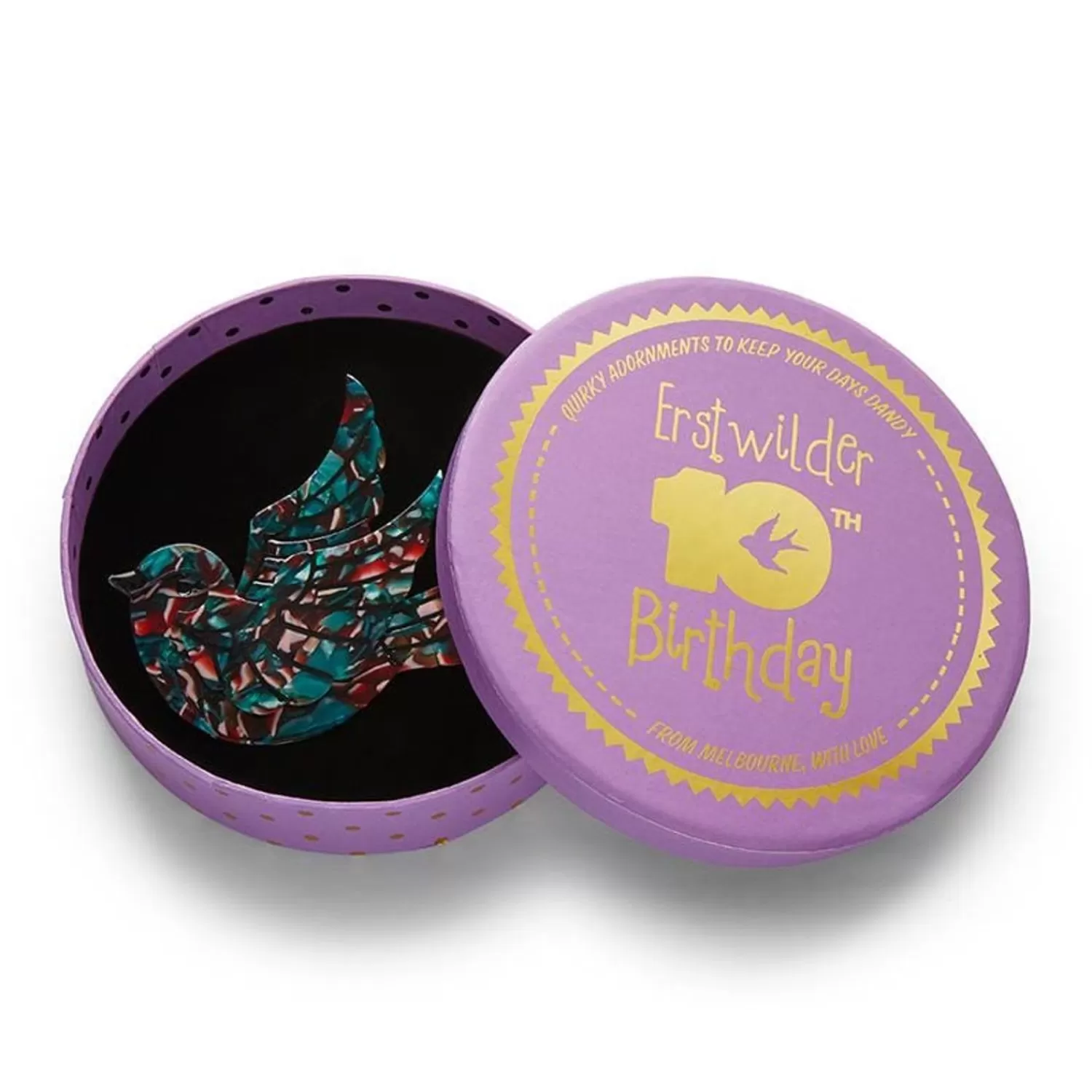 With Striking Blue And Red Textured Resin And Hand-Painted Details, This 10Th Birthday Edition Of Our Fabulous Sparrow Brooch Is One We Can Get Swept Up In Celebrating.