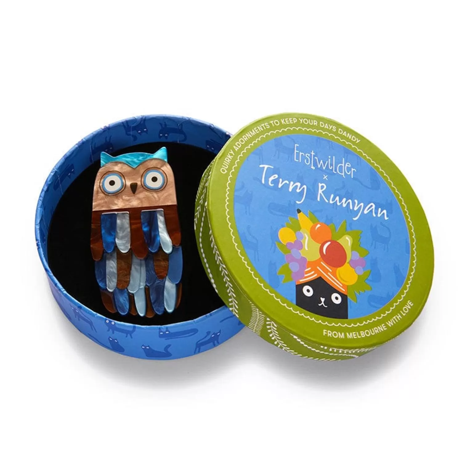 The Appropriately Named Feather Dress Brooch Has Been Hand-Assembled From A Variety Of Textured Resins, With Hand-Painted Details That Highlight The Delightfully Distinct Style Of Artist Terry Runyan. Standing Out As The Sole Art Accessory On Your Person, This Fanciful Owl Makes An Equally Enchanting Outfit Enhancer When Paired With Its Matching Earrings, Enamel Pin Or Hair Clips.