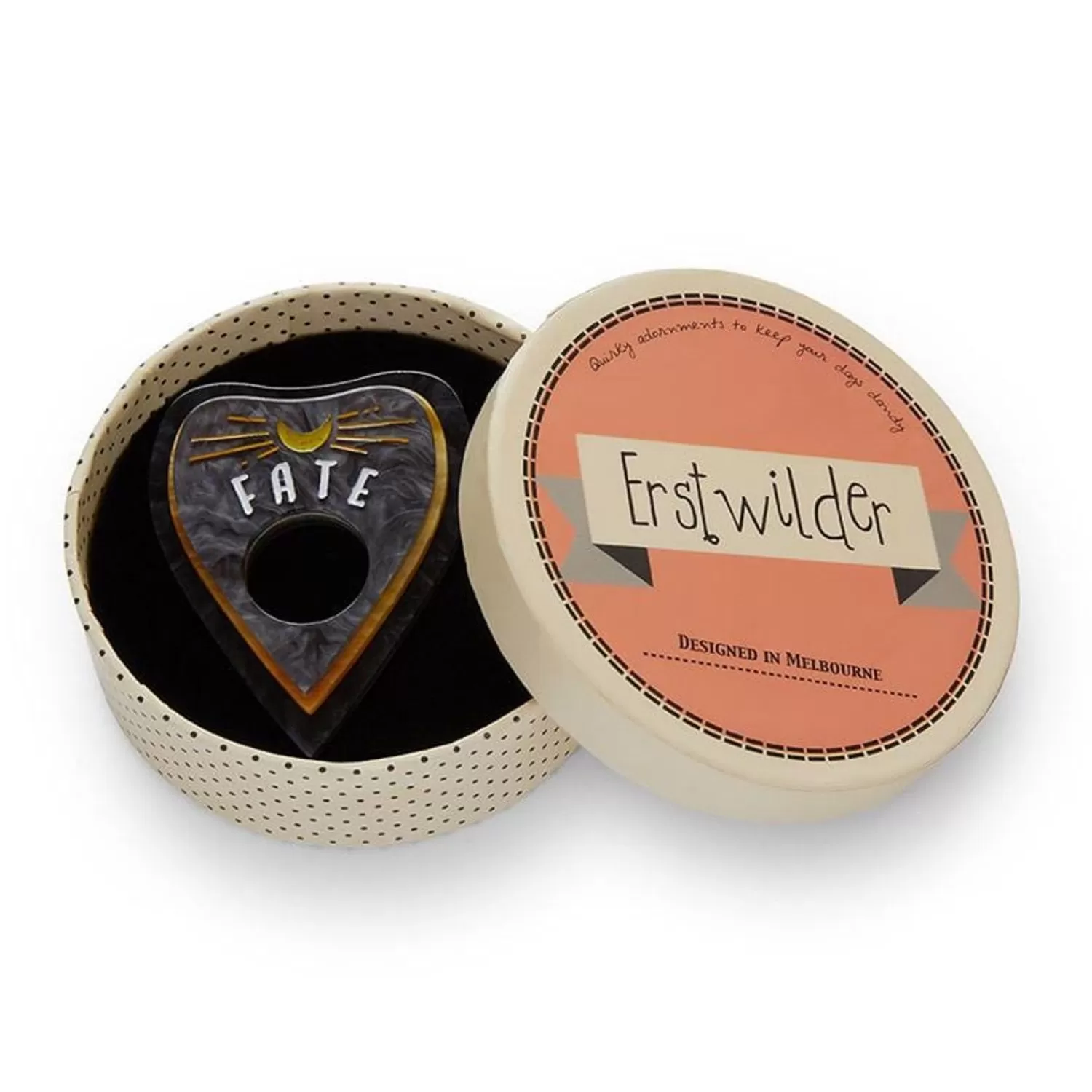Follow The Rules Of The Ouija Board And You’Ll Be Fine, Probably. With Gorgeously Ghoulish Textured Resins, And Sparkly Bubble Resin This Hand-Painted Brooch Will Show You The Way To The Other Side. Pair With The Matching G-O-O-D-B-Y-E Earrings And Seal Your Fate.