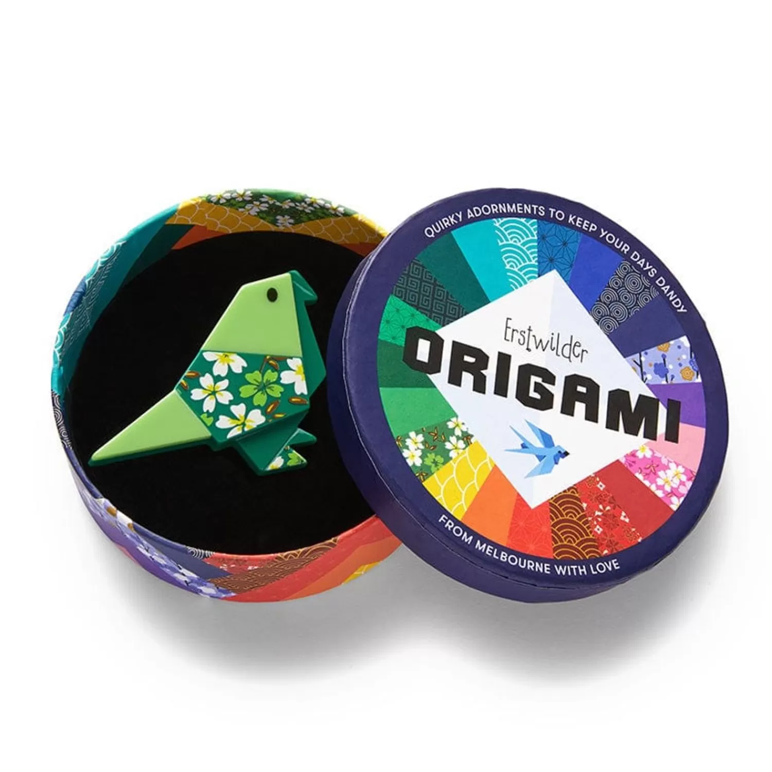 Hand-Assembled From A Combination Of Complementary Printed And Solid Resins, This Limited-Run Gift Of The Gab Brooch Is The Type Of Accessory That Will Have Everyone Talking. With The Expertly-Layered Resin Perfectly Emulating The Folds Of Origami Paper, You Can Ensure That Birds Of A Feather Flock Together By Pairing This Design With It’S Matching Gift Of The Gab Drop Earrings Or Hair Clips.