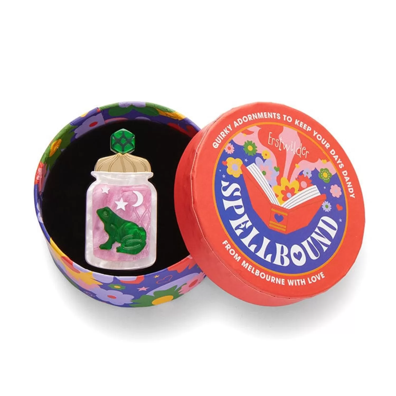 Fall In Love With This Transformative Growth Eternal Frog Brooch. This Wearable Art Accessory Has Been Hand-Assembled From A Selection Of Stand-Out Resins. Part Of Our Spellbound Release, This Frog-In-A-Jar Mini Brooch Features A Combination Of Hand-Painted And Laser-Etched Details Making It An Evolutionary Halloween Wardrobe Enhancement.