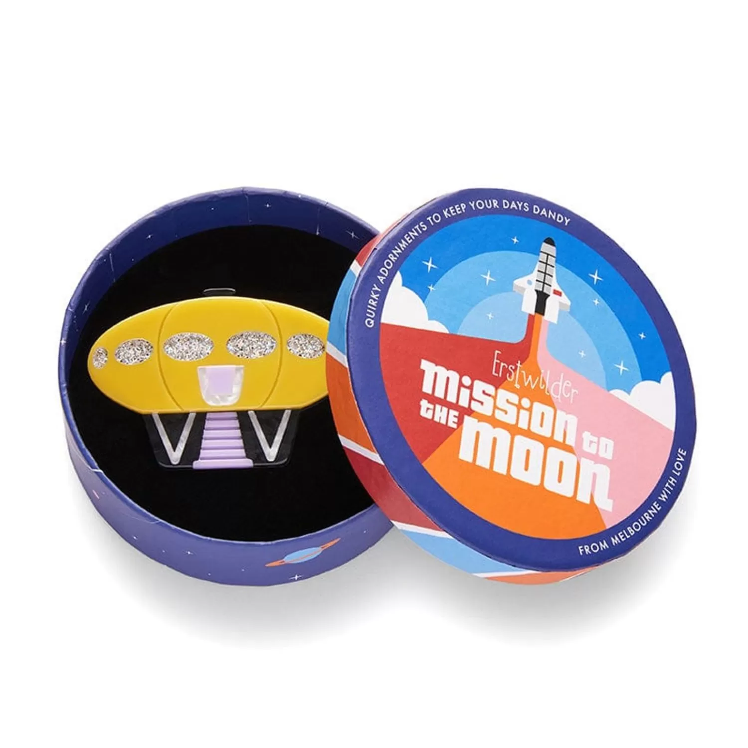 A Fusion Of Fantastical Resins Bring This Hand-Assembled Outer-Space Hotel Brooch To Life. Part Of Our Mission To The Moon Range Of Out Of This World Accessories, Hotel Futura Takes Design Inspiration From 1960S Futurism, With Some Added Erstwilder Quirk, And Can Be Worn Together With Our Space Chic Souvenirs Double Brooch To Complete That Off-World Holiday Look.
