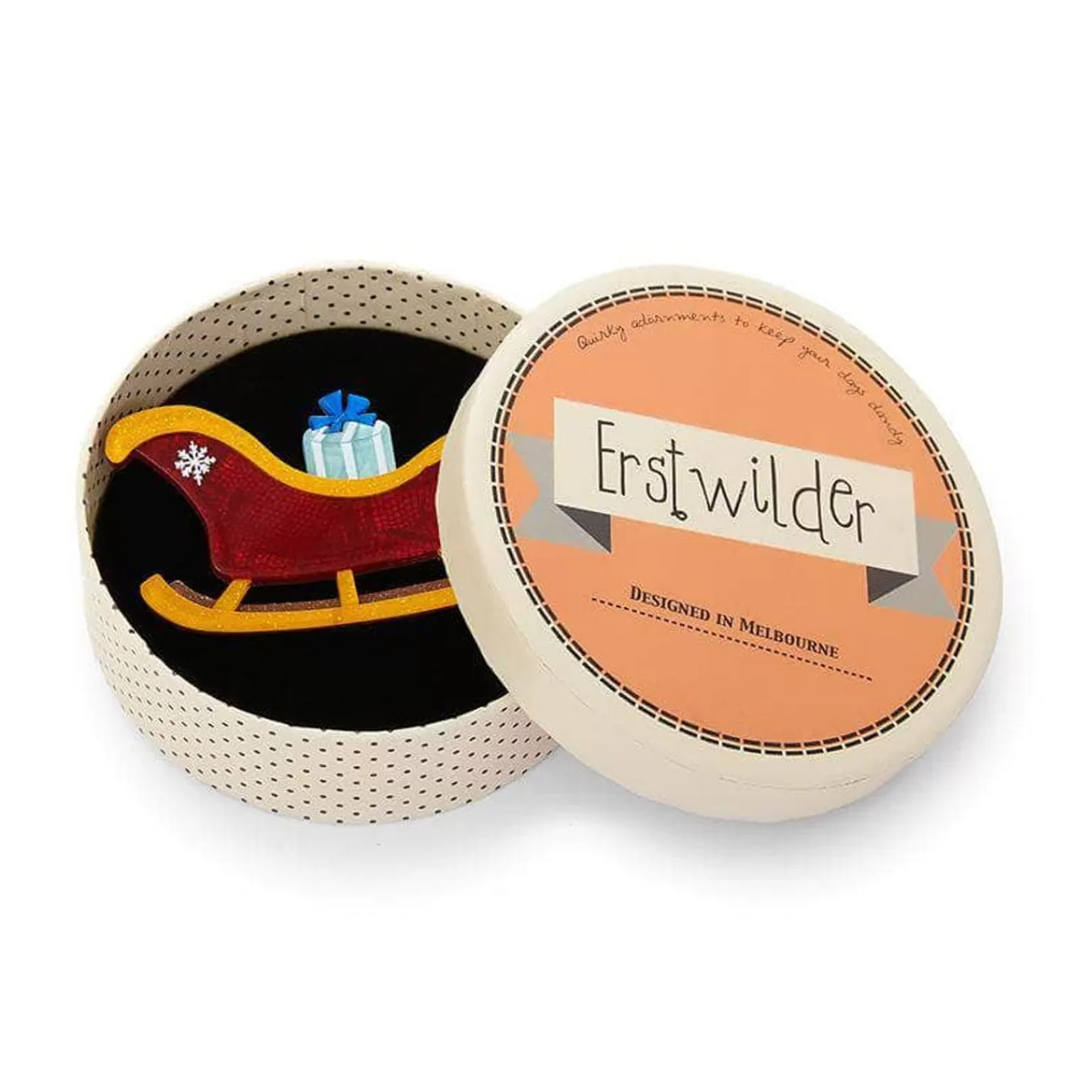 The Transport Of Choice For All Those Working Late This Christmas Evening, Our One-Horse-Open-Sleigh Brooch Has Been Hand-Assembled From Our Glitter And Textured Resins And Features Hand-Painted Details. You Can’T Go Past This One If You Have A Lot Of Gifts To Give In A Short Amount Of Time.Original Designer Elena Leong