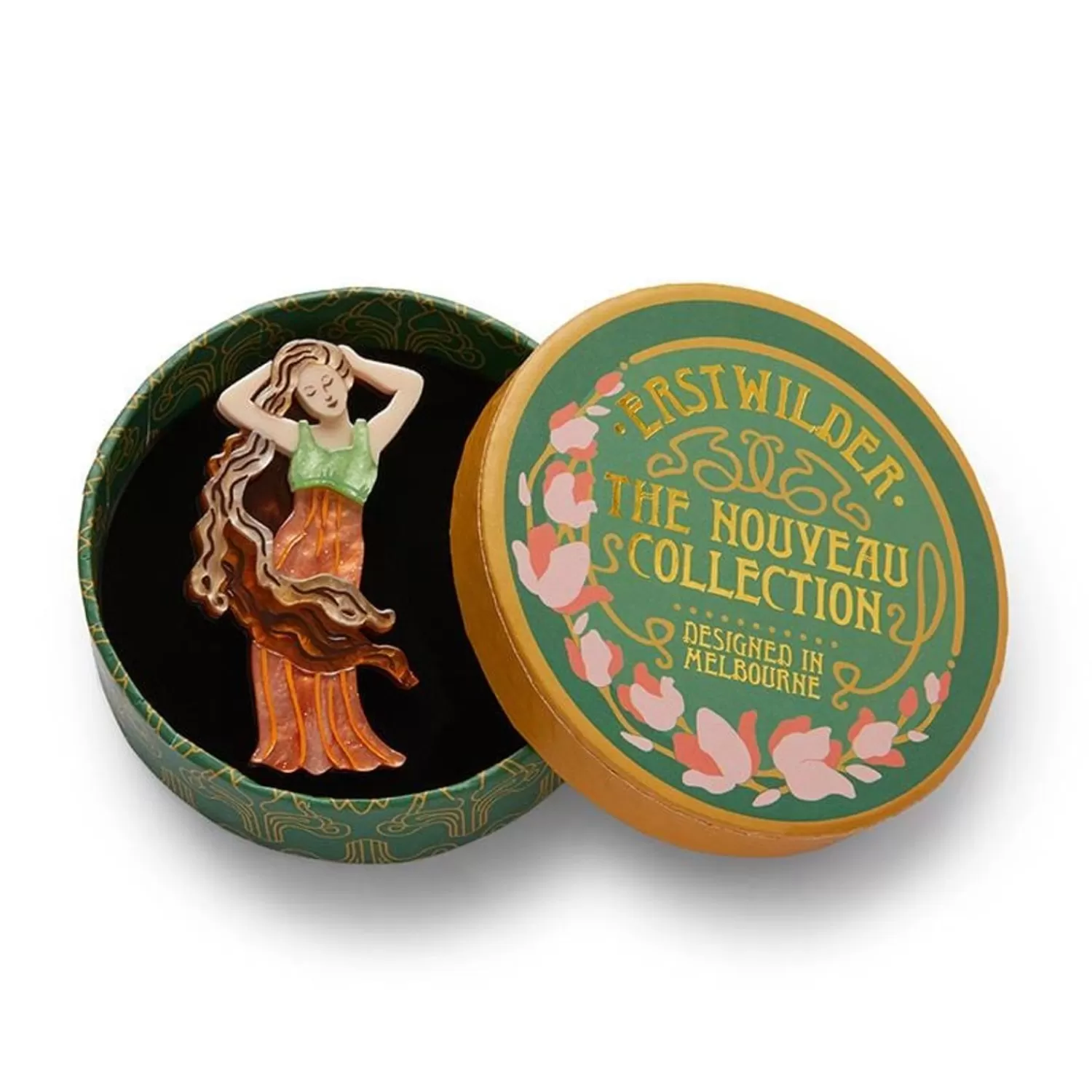 She Looks So Peaceful, So Full Of Life. With Beautiful Flowing Textured And Glitter Resins, This Brooch Is Hand-Painted And Hand-Assembled To Reflect The True Artistry Of The Art Nouveau Period. Add A Touch Of The Lavish To Your Outfit Of The Day, With This Lady Of Love.