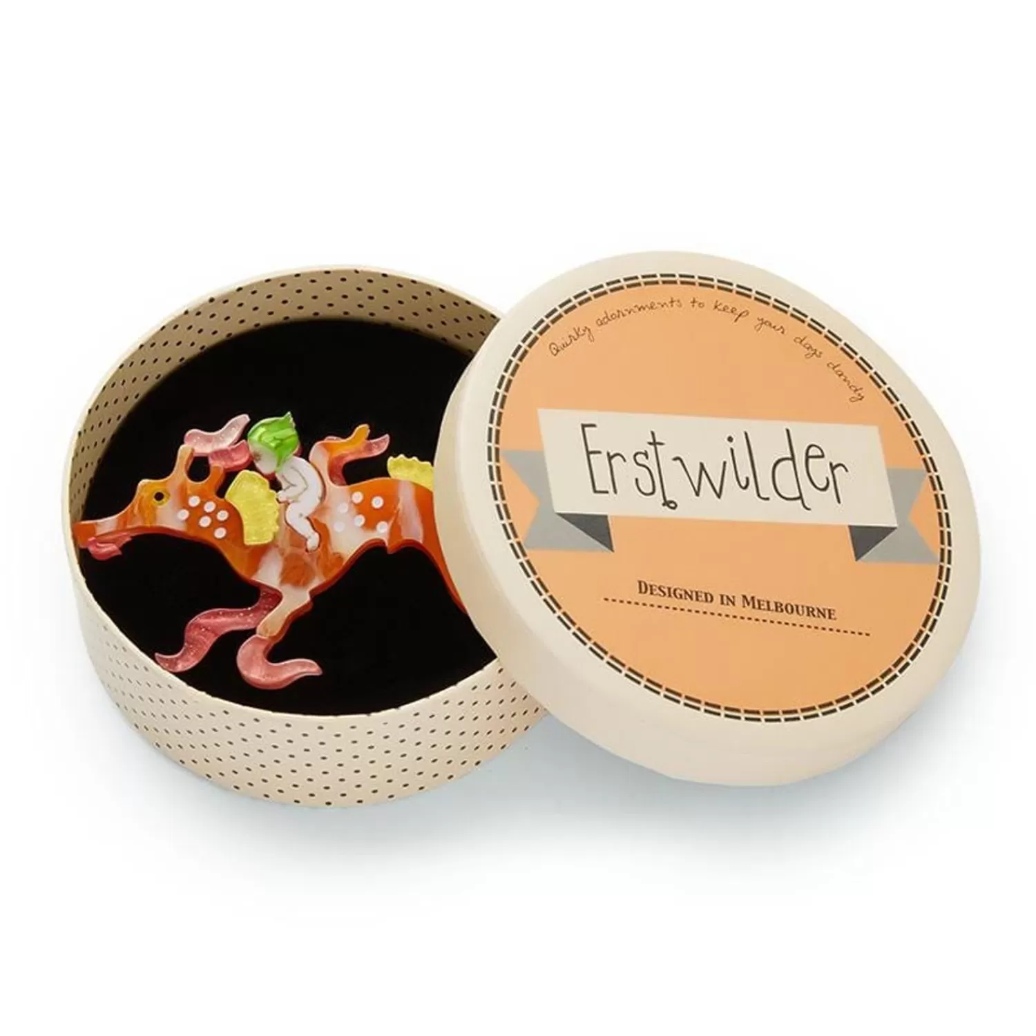 Hitch A Ride With This Glorious May Gibbs X Erstwilder Leafy And The Sea Dragon Brooch. Hand-Assembled From A Selection Of Patterned And Textured Resins And Featuring Hand-Finished Details, This Perfect Pair Love To Travel, So Show Them Off.
