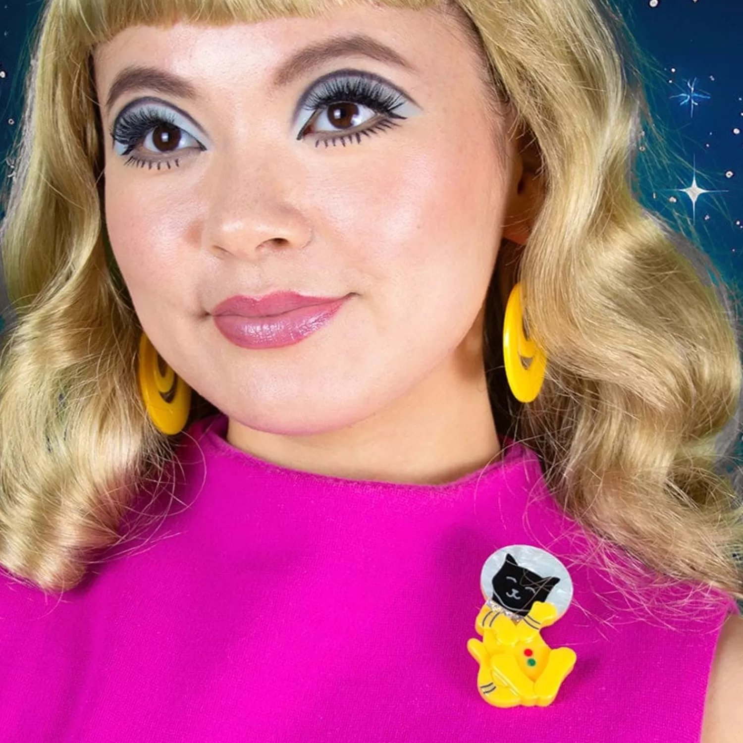 An Assemblage Of Adventurous Resins Bring This Hand-Assembled Black Cat Astronaut Brooch To Life. Part Of Our Mission To The Moon Range Of Out Of This World Accessories, Major Tomcat Takes Design Inspiration From 1960S Futurism, With Some Added Erstwilder Quirk, And Can Be Worn Together With Any Combination Of Our Daring Dogmonaut, Stout-Hearted Spaceham Or Interplanetary Pug Brooches To Represent Our Fearless Furry Friends.