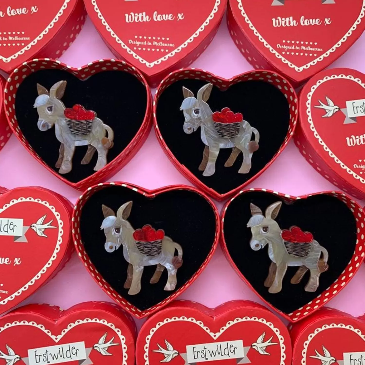 Hand-Made With Some Of Our Most Magnificent Marbled Resin, Our Murray The Donkey Brooch Has Hand-Finished Details And A Whole Basket Of Hearts He’S More Than Happy To Share.