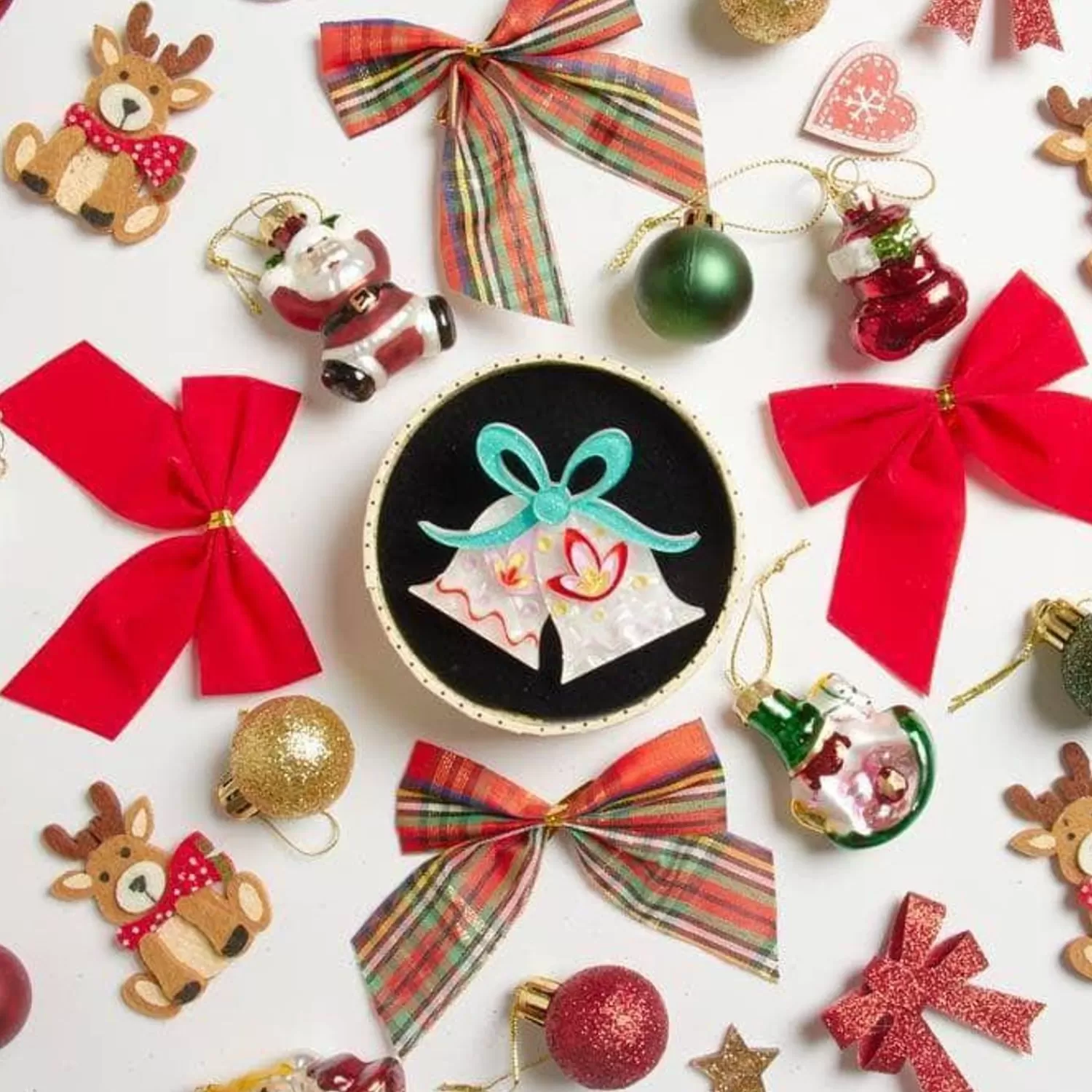 So Synonymous With The Season That They Are The Subject Of Several Carols. This Elegant Christmas Bells Brooch Has Been Hand-Assembled From A Combination Of Textured And Glitter Resins. Oh How They Ring!Original Designer Donna Luke
