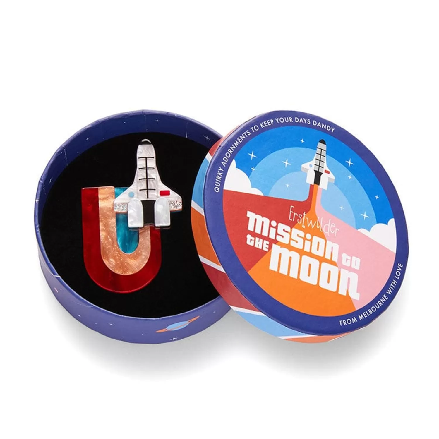 A Perfect Palette Of Interplanetary Resins Bring This Hand-Assembled Spaceship Brooch To Life. Part Of Our Mission To The Moon Range Of Out Of This World Accessories, Mission To The Moon Takes Design Inspiration From 1960S Futurism, With Some Added Erstwilder Quirk, And Can Be Worn Alongside It’S Matching Necklace Whenever You’Re Set To Embark On A Journey.