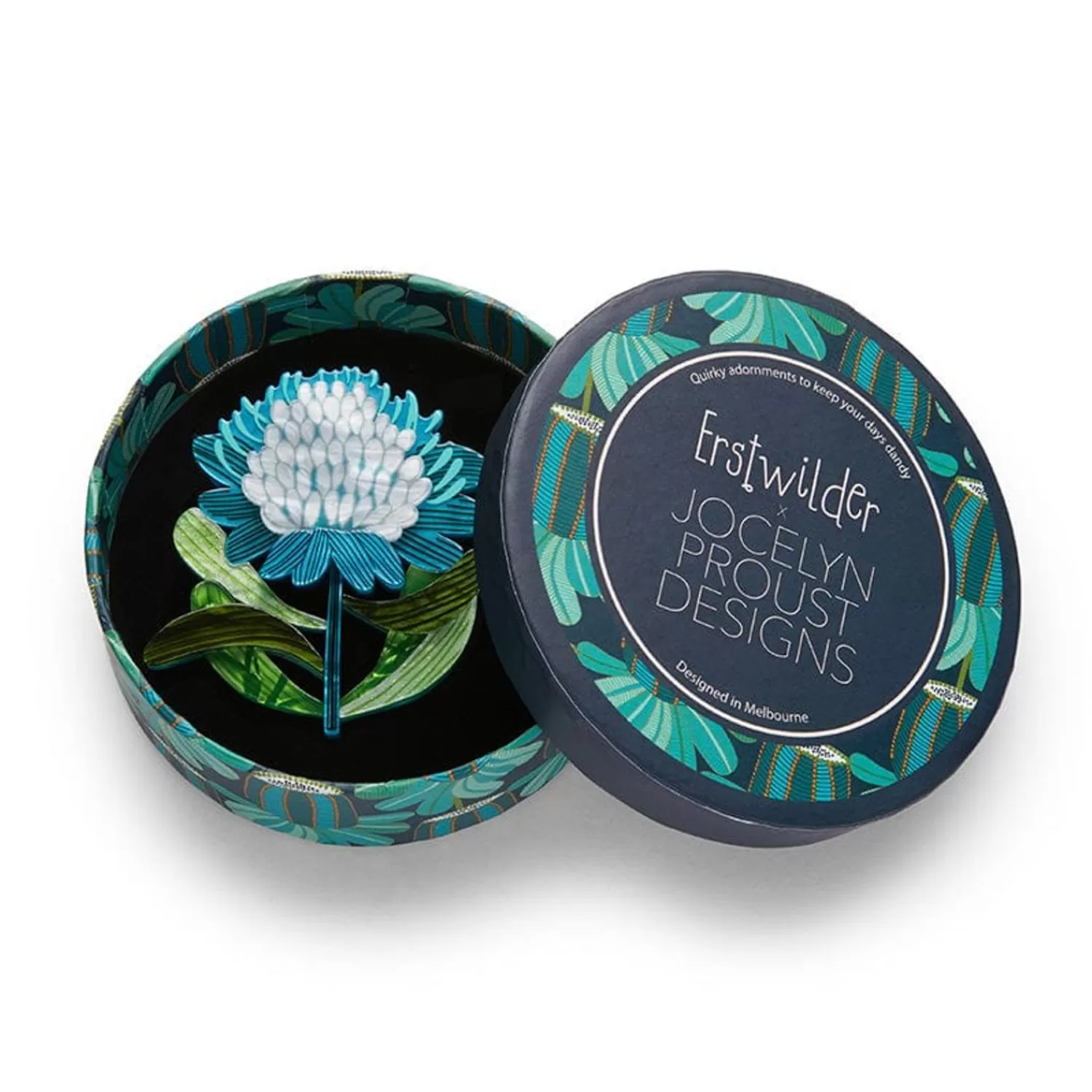 Hand-Assembled From A Selection Of Coloured Textured Resins And Featuring A Combination Of Printing, Painting And Highly Detailed Line Work, This Waratah-Inspired Flower Brooch Is Part Of The Second Erstwilder X Jocelyn Proust Designs Collaboration. With Artistic License Applied, This Piece Is Made Ever More Special Given Waratahs Are Not Found In Blue In Nature. Pair It With It’S Matching Necklace For A Magical Floral Statement.