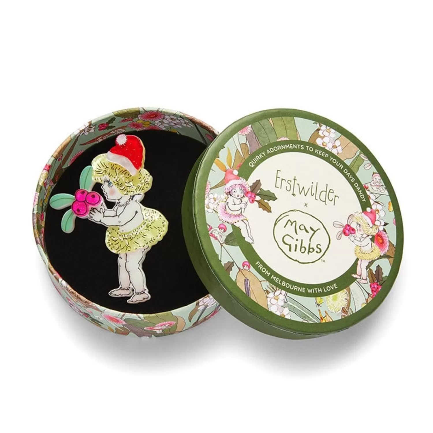 Part Of Our 2023 Erstwilder X May Gibbs Collection, This Native Berries Christmas Brooch Has Been Caringly Constructed From Layered Resins And Finished With A Combination Of Printing And Highly Detailed Line Work. A Product Of The Imagination Of One Of Australia’S Most-Beloved Artists, It’S Going To Be A Berry Good Christmas For This Bush Baby.