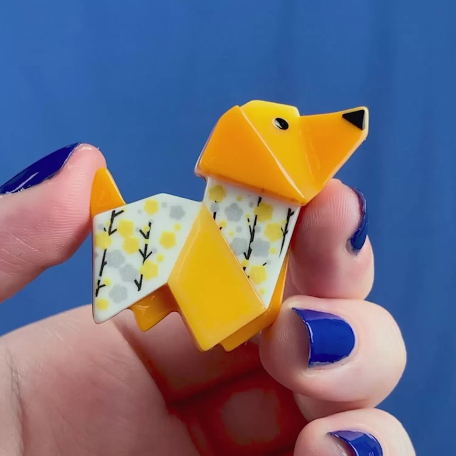 Hand-Assembled From A Combination Of Printed And Solid Resins, This Limited-Run New Tricks Brooch Is Puppy Love Presented As Wearable Art Accessories. With The Expertly-Layered Resin Perfectly Emulating The Folds Of Origami Paper, You Can Ensure You’Re Top Dog By Pairing This Piece With The Matching Brooch, Or Complete The Look With Its Matching Stud Earrings.