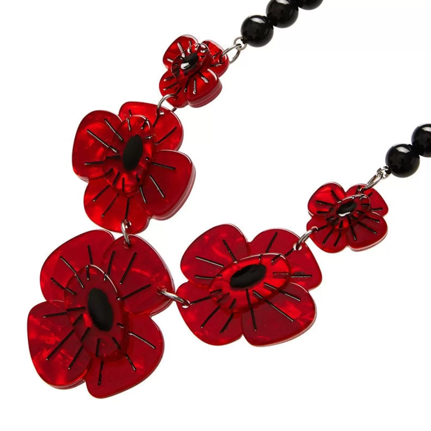 This Elegant Remembrance Poppy Necklace Serves As A Beautiful Reminder Of The Sacrifice Of All Those Who Fought And Died In The Defence Of Freedom The World Over. It Is Crafted From A Combination Of Red And Black Textured Resins On A Black Beaded Chain.
