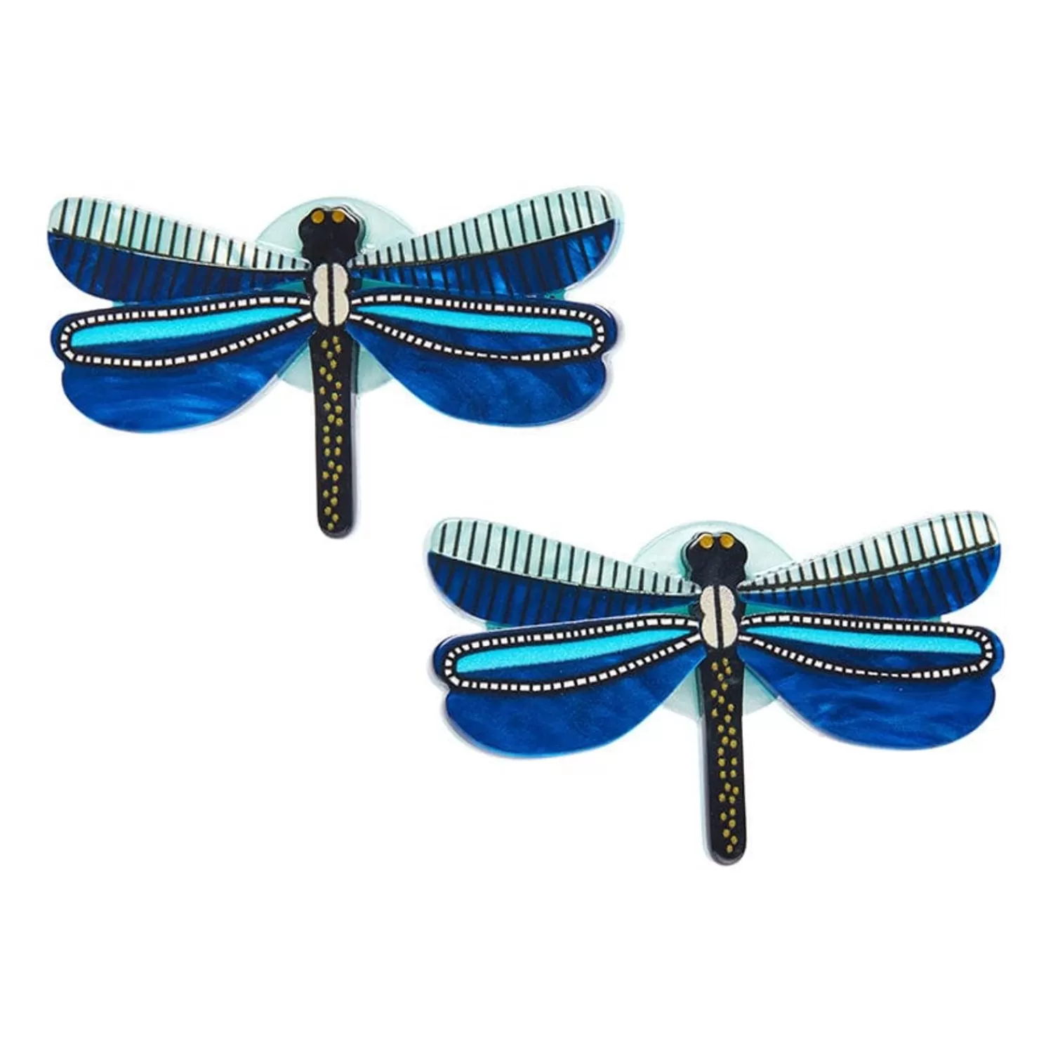 Hand-Assembled From A Selection Of Colourful Resins And Featuring A Combination Of Printed And Painted Details, These Bright Blue Dragonfly Hair Clips Are Part Of The Third Erstwilder X Jocelyn Proust Designs Collaboration. Capturing The Essence Of Their Fast-Moving Inspiration, This Sapphire Sky Dancer Duo Can Be Worn With Their Matching Brooch, Earrings And Hard Enamel Pin.