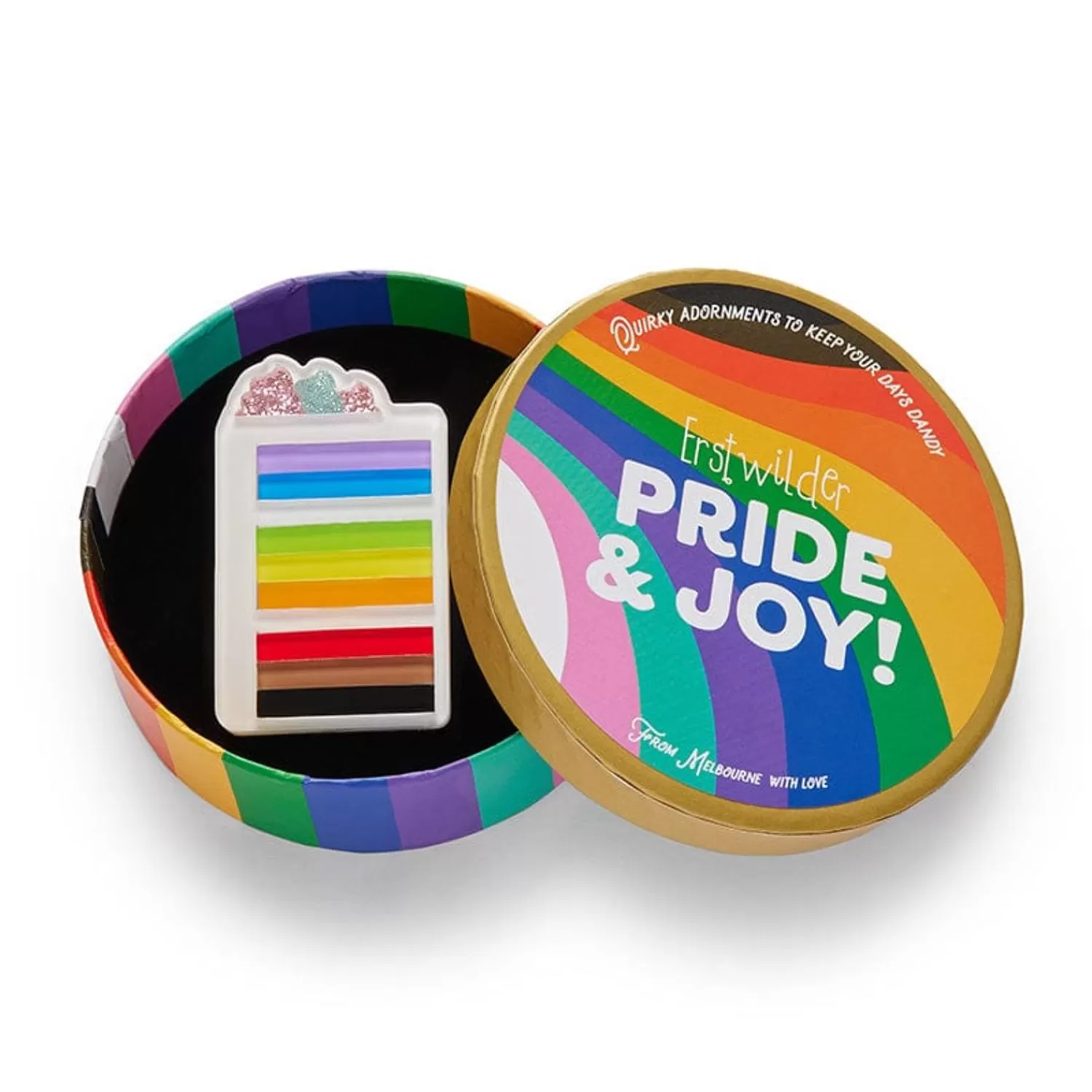 Please Note: Designs In The Pride &Amp; Joy Range Have Been Created Using A Fabulously Colourful Selection Of Bubble Resins, Representative Of The Progress Pride Flag. Due To A Combination Of The Nature Of This Bubble Resin, The Laser Cutting Process, And The Arrangement Of The Pieces To Create A Rainbow Effect, There May Be Small Black Lines Visible Between Layers Of The Bubble Resin. This Is A Normal And Unavoidable Part Of The Creation Of These Pieces.Slice Of Pride Cake Brooch*Erstwilder Discount