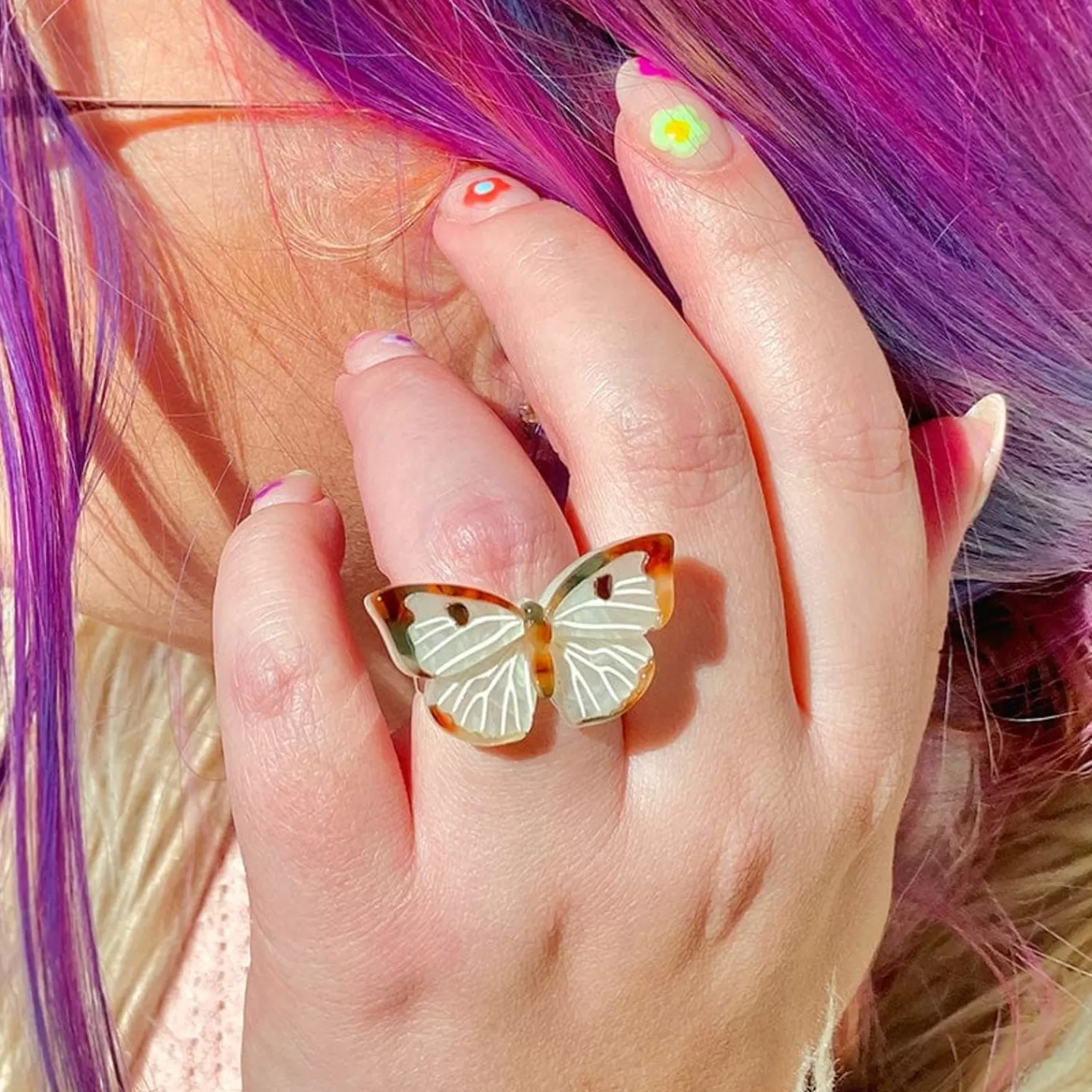 A Beautiful Butterfly To Complete Your Garden. With Textured Resins In White And Grey, Our Social Butterfly Statement Ring Is A Style Staple For Any Social Butterfly, With Hand-Assembled Details You’Ll Want To Add This Little Friend To Any Hand.