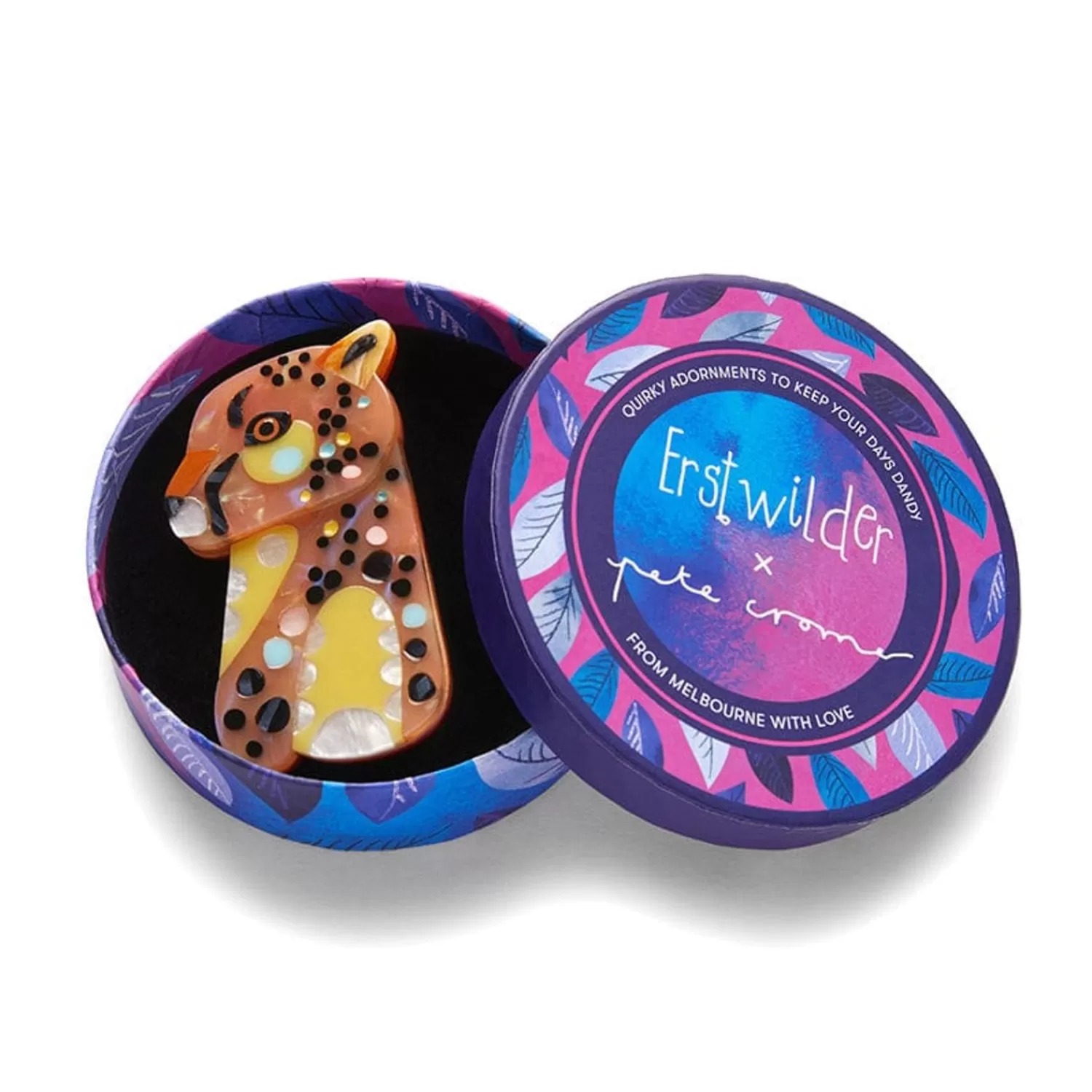 Faster Than A Sports Car And Just As Fabulous, You’D Better Be Quick To Catch This One! A Part Of Our Very Wild Collaboration With Beloved Australian Artist Pete Cromer, The Choosy Cheetah Brooch Has Been Brought To Life Using Mixed Resin And Features Hand Finished Details. Adorn Your Outfit In Spotted Joy For A Quick Getaway.
