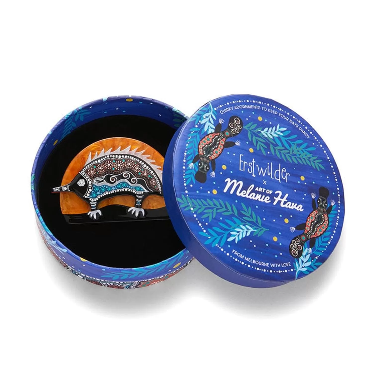 Prickly To The Touch But Easy On The Eye, This Enchanting Echidna Brooch Is Here To Make A Point; Echidnas Make For Perfect Outfit Companions! This Gorgeous And Detailed Design Is A Part Of Our Long-Awaited Collaboration With Aboriginal Artist Melanie Hava. With Layered Resin And Featuring Hand-Finished Details, Melanie’S Incredible Art Has Been Taken Off Canvas And Brought To Life As Wearable Art.