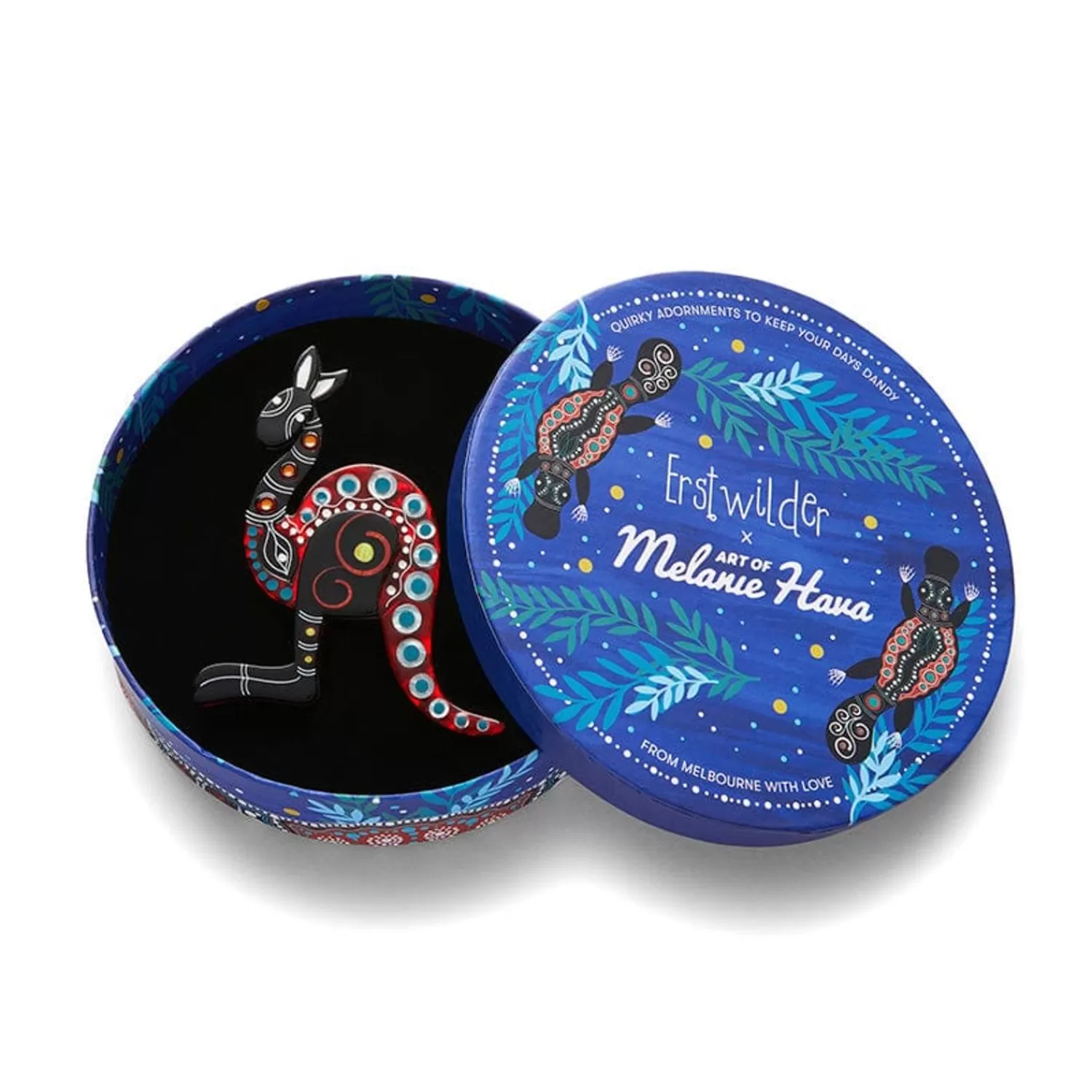 Always Jumping Forward, Toward New Opportunities, The Kangaroo Is One Of The Most Culturally Significant Australian Animals. There May Be More Kangaroos Than People Here Down Under, But Our Kangaroo ‘Yuri’ Brooch Is As Rare As Can Be. Best Add To Cart Immediately, Before They Hop Away. This Unique And Elevated Design Is A Part Of Our Long-Awaited Collaboration With Aboriginal Artist Melanie Hava. With Layered Resin And Featuring Hand-Finished Details, Melanie’S Incredible Art Has Been Taken Off Canvas And Brought To Life As Wearable Art.