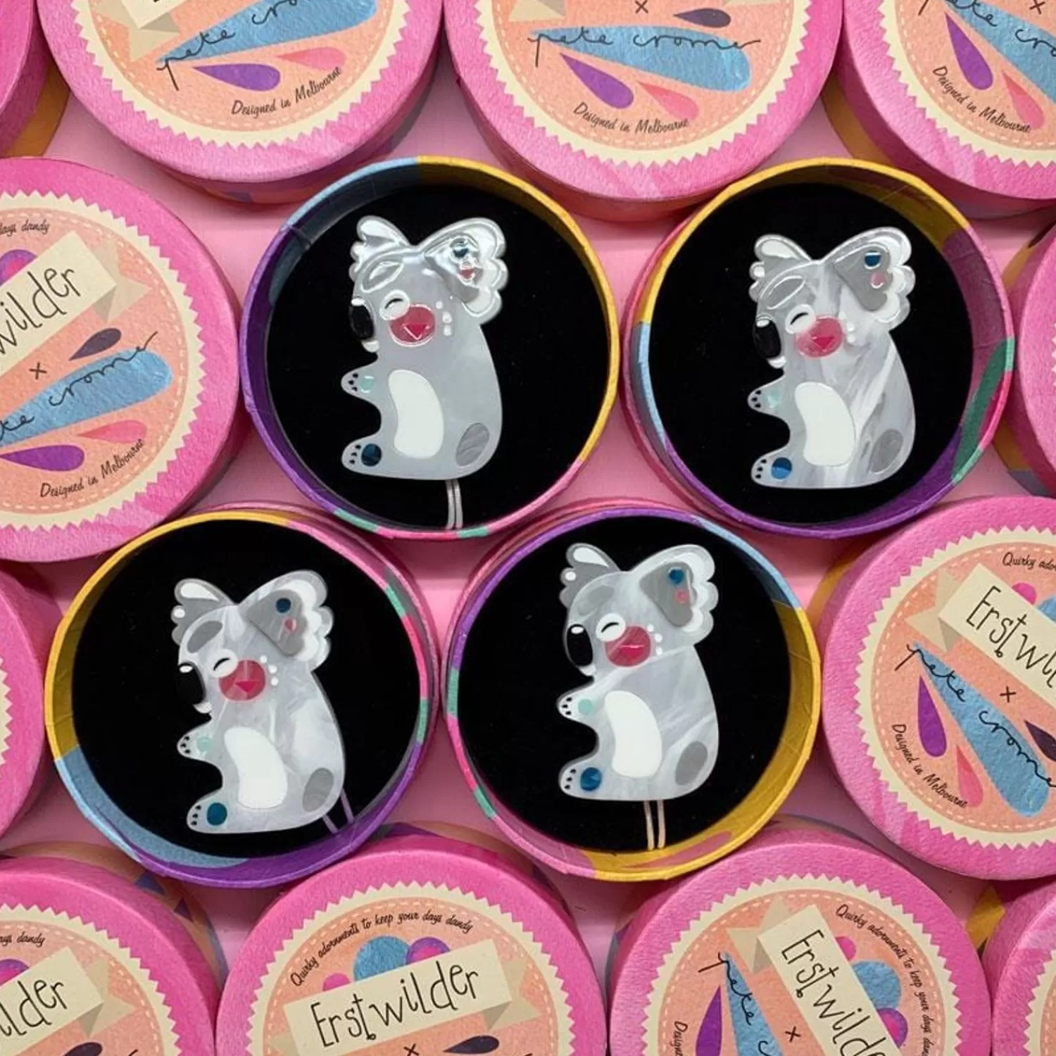 A Very Special Collaboration With Beloved Australian Artist Pete Cromer, This Brilliant Koala Brooch Has Been Brought To Life From A Combination Of Marbled And Solid Resins. She’S Lovingly Designed, Hand-Assembled And Hand-Painted, And She Is Looking Forward To Settling Down For A Nap In Your Arms.