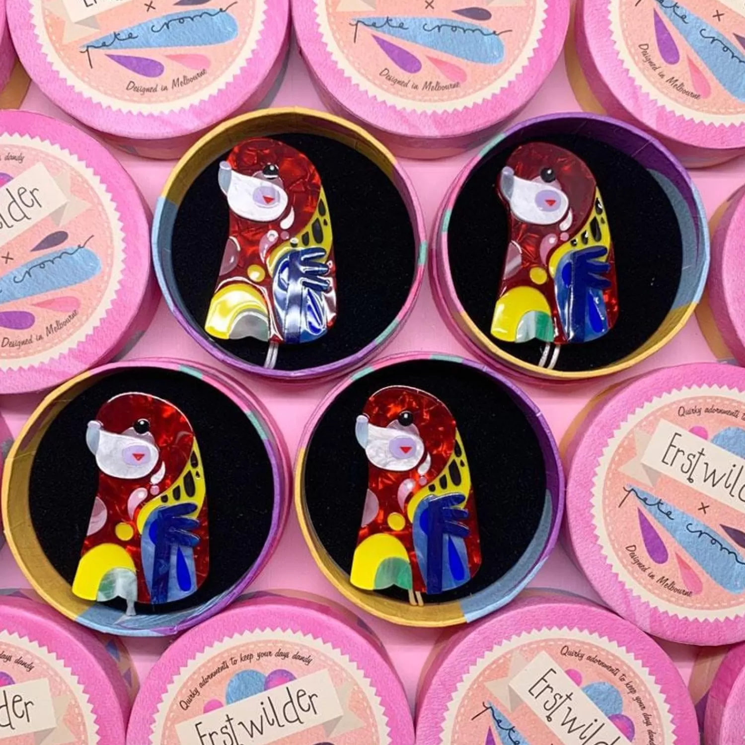 A Very Special Collaboration With Beloved Australian Artist Pete Cromer. Such A Bright And Bold Little Fellow The Rosella. With A Standout Collection Of Stunning Textured And Bubble Resins, This Brooch Comes Together With Hand-Assembled Details That Are A Must For Those Who Love A Walk On The Wild Side! No One Can Ignore A Bird This Colourful, And This Cheeky!