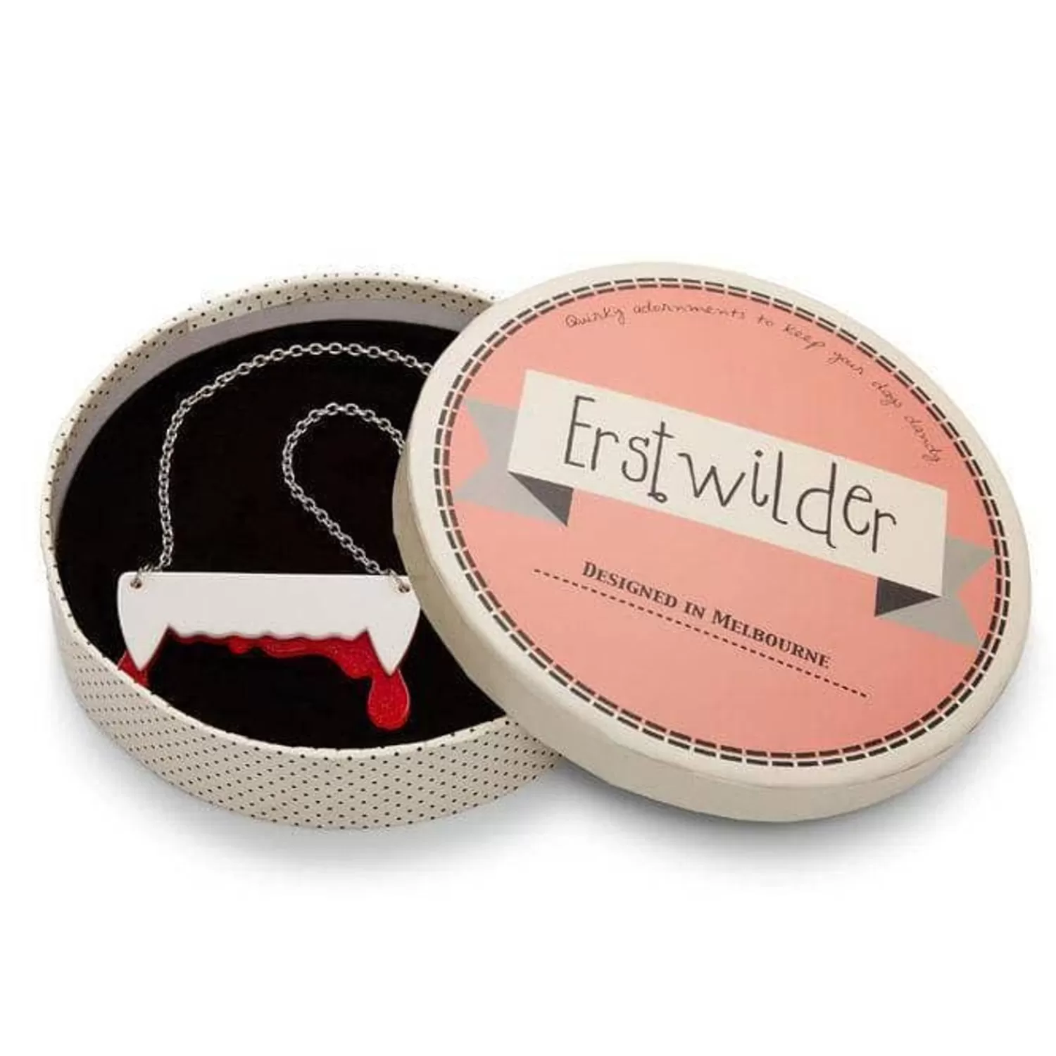 Join The Erstwilder Fang-Club With This Special Edition Vampire Inspired Necklace. Created From A Combination Of Glitter And Solid Resins With Hand-Assembly And Hand-Painted Details, It Serves As Both A Statement Piece To Complete Your Outfits And A Stern Warning To Anyone Who May Cross You!