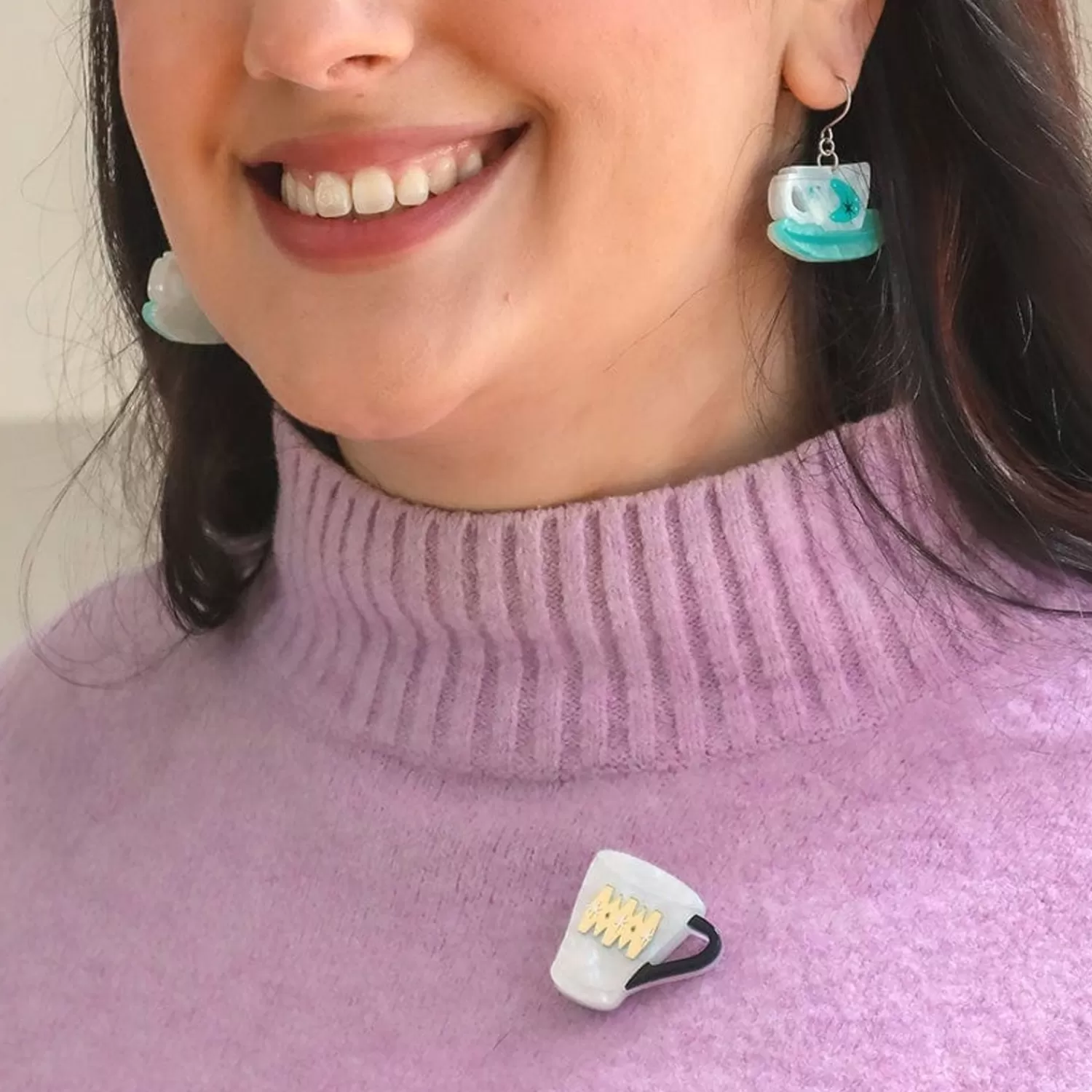 35Mm X 32Mm (H X W)Wake Up And Smell The Coffee Mini Brooch*Erstwilder Hot