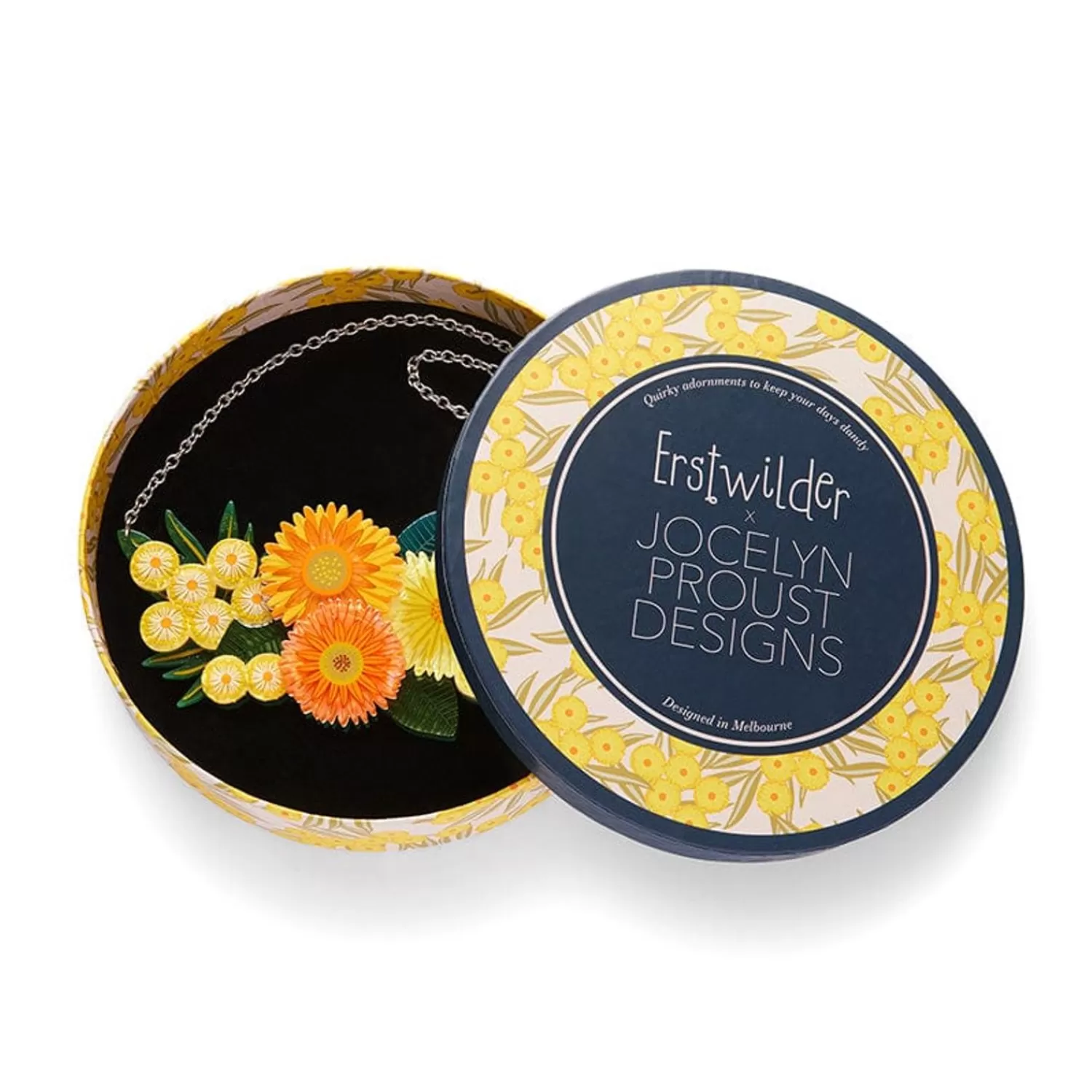 Hand-Assembled From A Selection Of Vibrant Resins And Featuring A Combination Of Printed And Painted Details, This Daisy And Wattle Floral Necklace Is Part Of The Third Erstwilder X Jocelyn Proust Designs Collaboration. Blessing Your Best Outfit With Brightness, Yellow Efflorescence Can Be Worn Alongside Any Of The Matching Brooch Designs From Which It Draws Its Inspiration, Or With Any Of Our Complementary Earrings.
